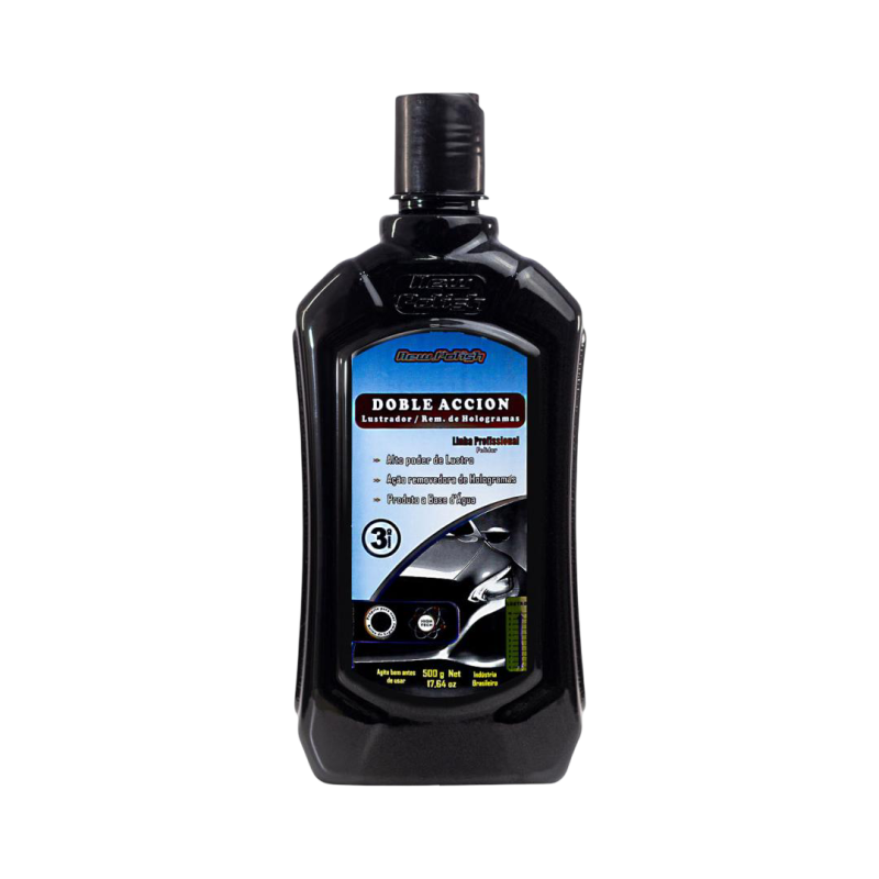Doble Acción New Polish es un pulidor y removedor de hologramas de alto rendimiento para el pulido automotriz. Es apto para todo tipo de pintura y repintado. Este producto fue desarrollado para la eliminación rápida y eficaz de marcas circulares (hologramas), manchas y contaminantes. Además de los beneficios mencionados, este producto produce un brillo intenso y duradero.