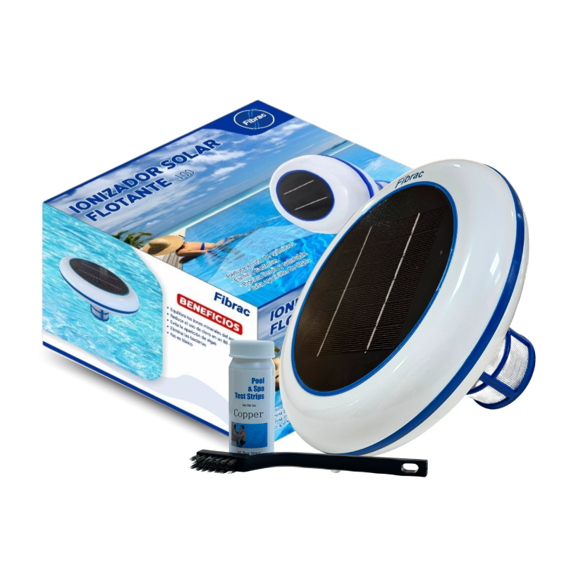 Los ionizadores solares flotantes mantienen tu piscina limpia y saludable de forma natural. Además, incluyen un cepillo para limpiar el electrodo y 30 tiras de test de cobre.
